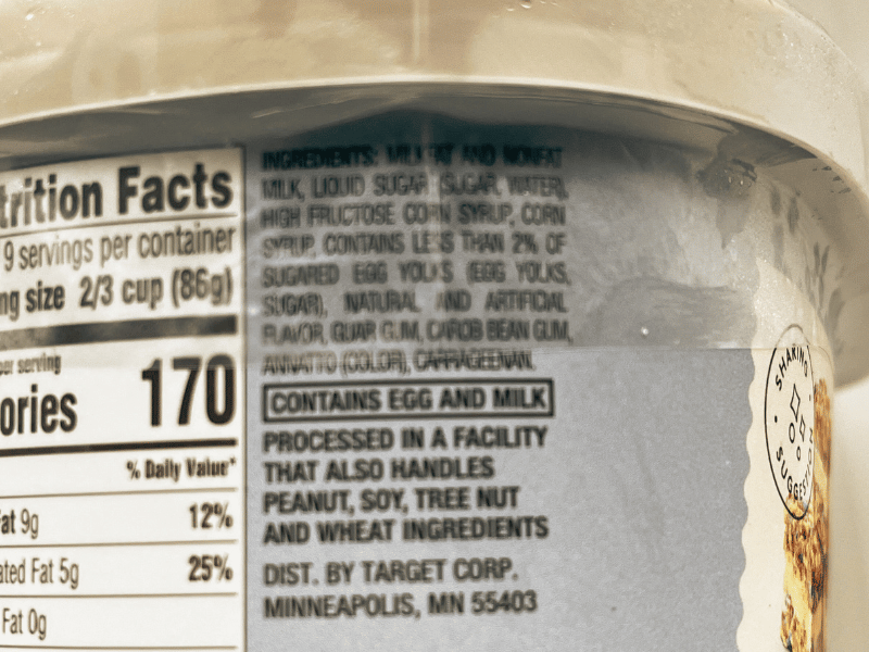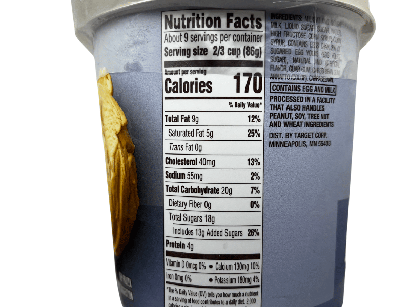 First off, it’s called “homemade vanilla” but I don’t know many homemade ice creams that use ingredients like high-fructose corn syrup (HFCS) and carrageenan. Furthermore, it’s artificially flavored and colored with annatto seemingly to give it a more egg yolk tone for a “homemade” vibe.